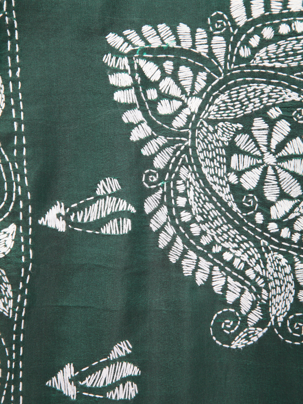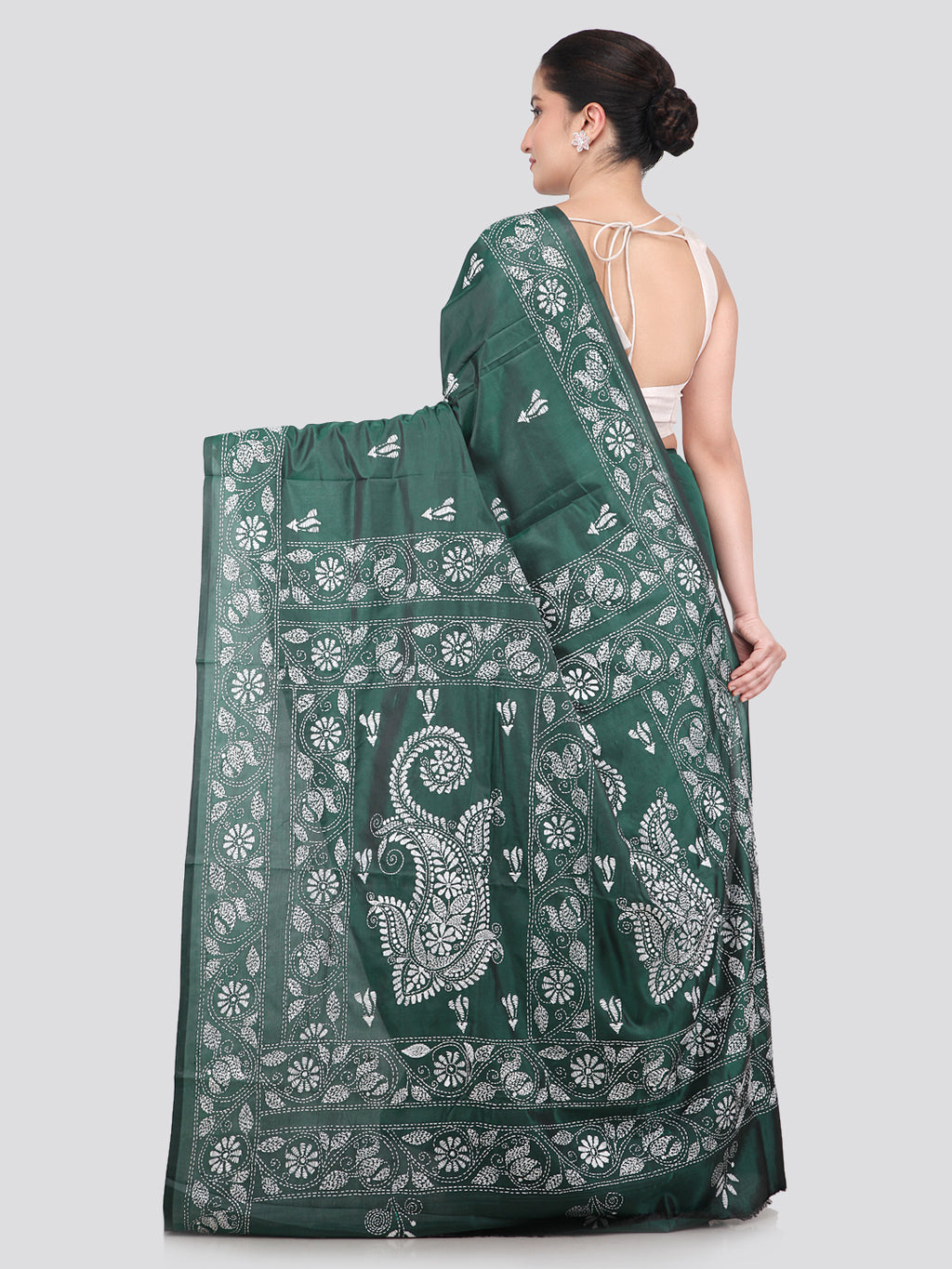 Pinkloom Green Handloom Silk Embroidered Katha Stitch Work Saree