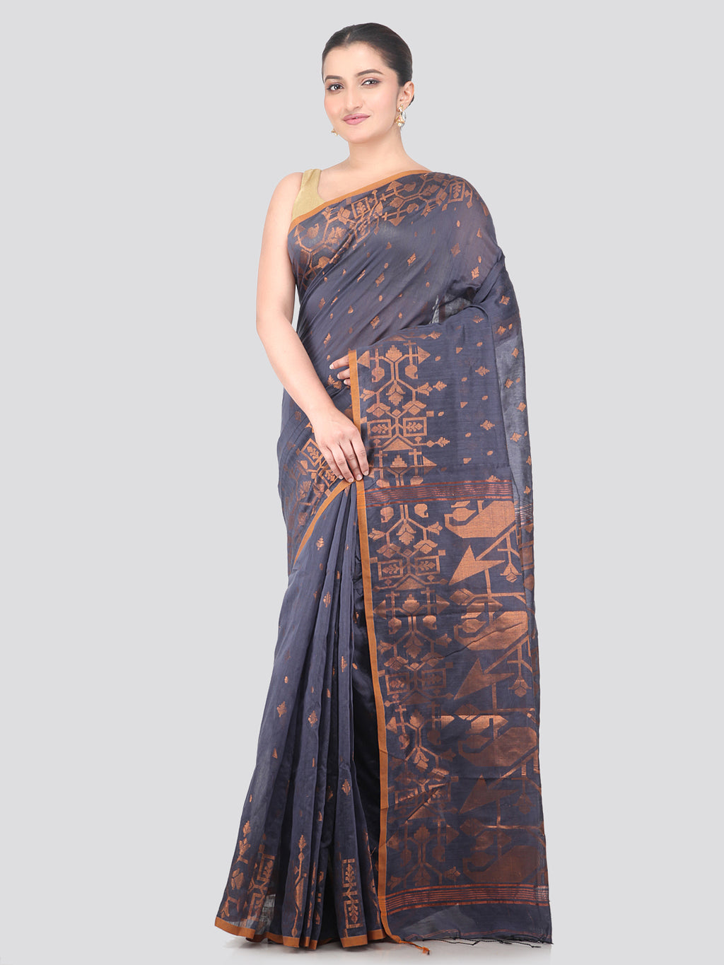 Pinkloom Grey Handloom Cotton bleand Saree