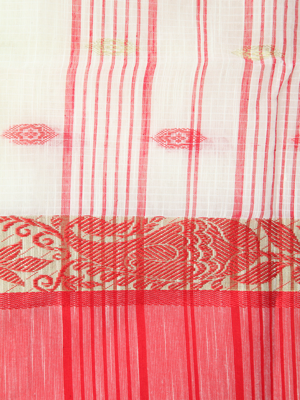 Pinkloom Off White Handloom Cotton bleand Saree
