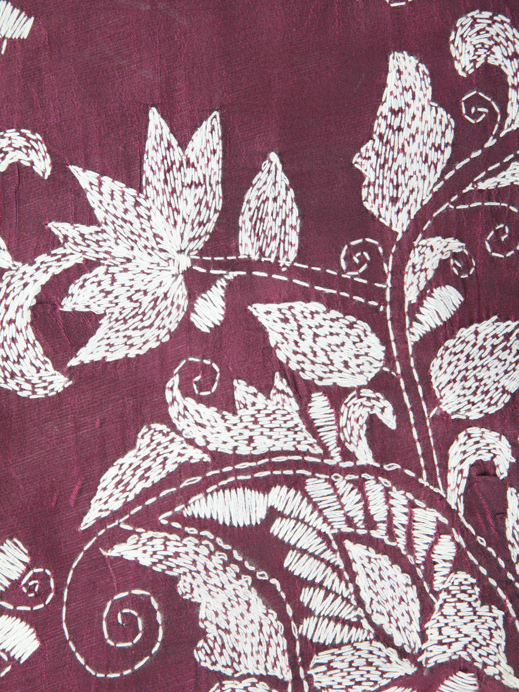 Pinkloom Wine Handloom Silk Embroidered Katha Stitch Work Saree